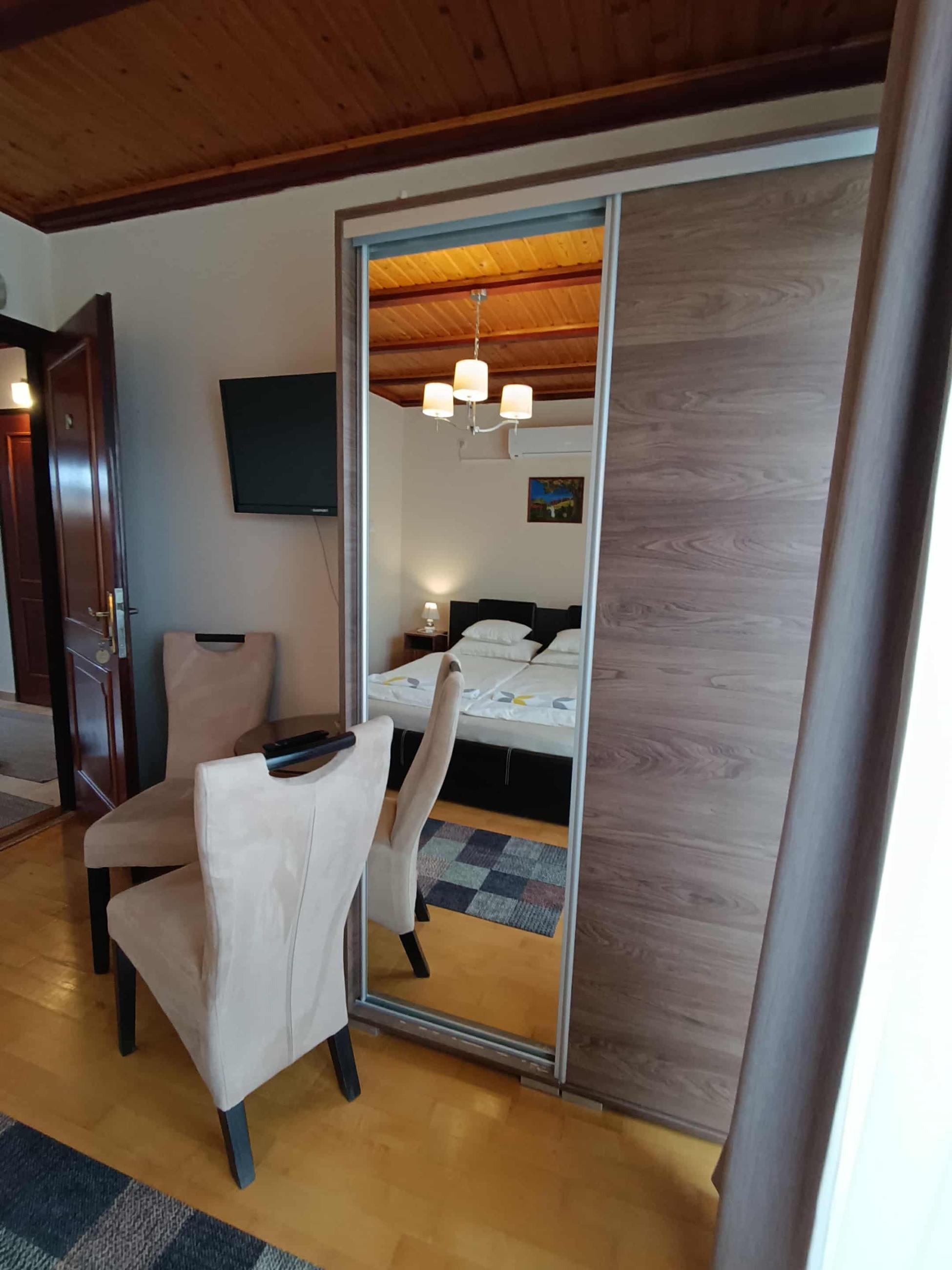 A panzió egyik legkedveltebb szobája, egyedülállóak és házaspárok részére kitűnő választás. Erkélyéről csodás kilátás nyílik a Liget Gyógyfürdő és az Erzsébet liget területére. A szobához tartozó fürdőszoba zuhanyozófülkével, fürdőszobabútorral berendezett.